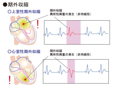 期外収縮(きがいしゅうしゅく)…脈が飛んだり、抜けたりする不整脈