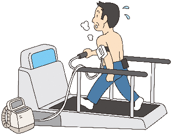 心臓の病気の中には、運動をした際に心臓に異常がないかどうかを検査する方法です。 まず、血圧計と心電図を記録するための電極を装着します。安静にした状態での血圧、心電図を記録した後、トレーニングジムなどにある屋内でランニングを行うためのマシーンであるトレッドミルで運動をしていただきます。最初はほとんど平地を歩いているだけのスピードですがトレッドミルマシーンの勾配(坂の角度)や速さがだんだん強くなってきます。 血圧や脈拍数が年齢で最初に設定された数値になるまで、運動を継続してもらいます。運動の途中で、息切れが強くなったり胸の痛みが出現したりした場合は、設定した値に到達しなくても検査が終了することがあります。そして運動中の心電図記録だけでなく、運動後に数分間休んでいる間、血圧も含めて記録を続けます。
