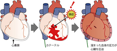 カテーテルによる心臓や血管への損傷により発生する可能性があります。