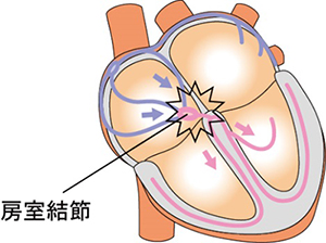 洞結節(心臓のペースメーカー)や房室結節(電気信号を心房から心室へ伝えるための中継地点)が焼灼により障害されることで発生します。洞結節や房室結節が障害されると、心臓が動くのに必要な電気信号が心臓に十分流れなくなり、極端に脈がゆっくりになります。重度かつ永続的な洞不全症候群・房室ブロックが発生した際には人工ペースメーカーの植え込みが必要になることがあります。 |