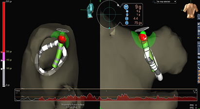 また、カテーテルが心臓にどのくらいの力で接しているかが常時測定できる「コンタクトフォースカテーテル」を使用することにより、より安全で効果的な治療が実現しました。 |