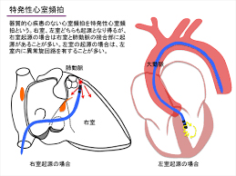 原因が心室にある不整脈を心室性不整脈と言います。心室は心臓のポンプ機能を担う部位のため、心室頻拍などは生命に直結する可能性があります。治療の仕方は他の不整脈と同様で、不整脈の原因を調べ焼灼することで治療を行います。心室は心房と比較して心筋が厚く、焼灼の効果は症例によって異なります。また、虚血性心疾患や心筋症などの基礎心疾患がある場合、原因部位が複数個所認められることもあり、1回の治療では不十分な場合もあります。 |