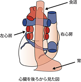 食道は左心房や肺静脈と近接しており肺静脈隔離術や左心房への焼灼により食道や食道周囲の神経が障害され発生することがあります。発生頻度は極めて稀ですが左房食道瘻(左房と食道の間に穴が開くこと)は致命的な合併症です。当院では食道温度計を鼻から挿入し食道内に留置することで食道の位置と食道温の測定を行うことで予防しています。挿入の際に抗凝固薬の使用もあり鼻出血が起こることがあります。 |
