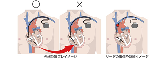 手術後にリードの位置がずれてしまい、ペースメーカーが正常に作動しなくなることがあります。